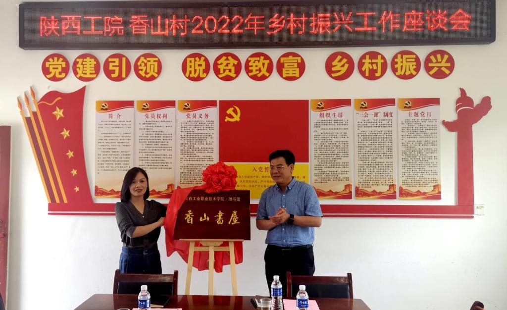 调研中,校长刘永亮与流水镇党委书记黄婷共同为学校援建的香山村新时代文明实践站项目“香山书屋”揭牌,并实地调研了香山村油茶产业园、菌类大棚、新建冷库、光伏发电等项目。