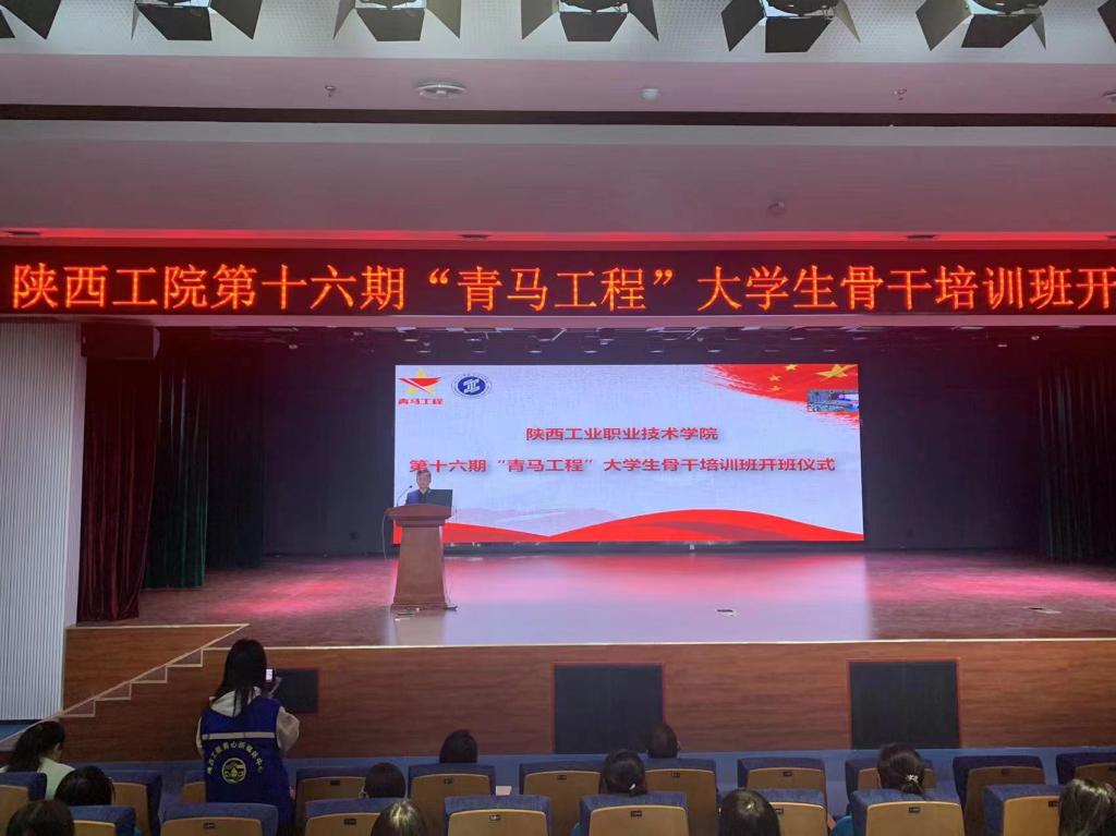 11月4日下午,我校第十六期“青马工程”大学生骨干培训班开班仪式在渭城校区学术会堂举行。校党委副书记贺天柱,组织部部长王超联,学工部部长、学生处处长郝军以及各二级学院党总支书记、团总支书记、全体青马班学员,通过线上线下两种方式参加了活动。开班仪式由团委书记赵双军主持。