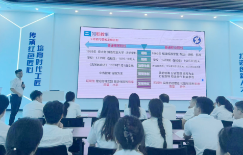 其次在“知职教事”方面,刘校长讲解了我国现行的国民教育体系类别,高等职业教育是我国高等教育的重要组成部分,它与普通高等教育同等重要不可或缺。普通高等院校的发展特征具有延续性,即理论指导实践,板块化排列有序,讲究质量和水平。而职业院校发展则具有阶段性特点,通过实践总结理论,更侧重质量和办学特色,着眼于岗位,职业教育和普通教育侧重点不同、落脚点亦不同。2022年新修订的《职业教育法》也凸出了职业教育是关系“国计民生”的重要战略地位。