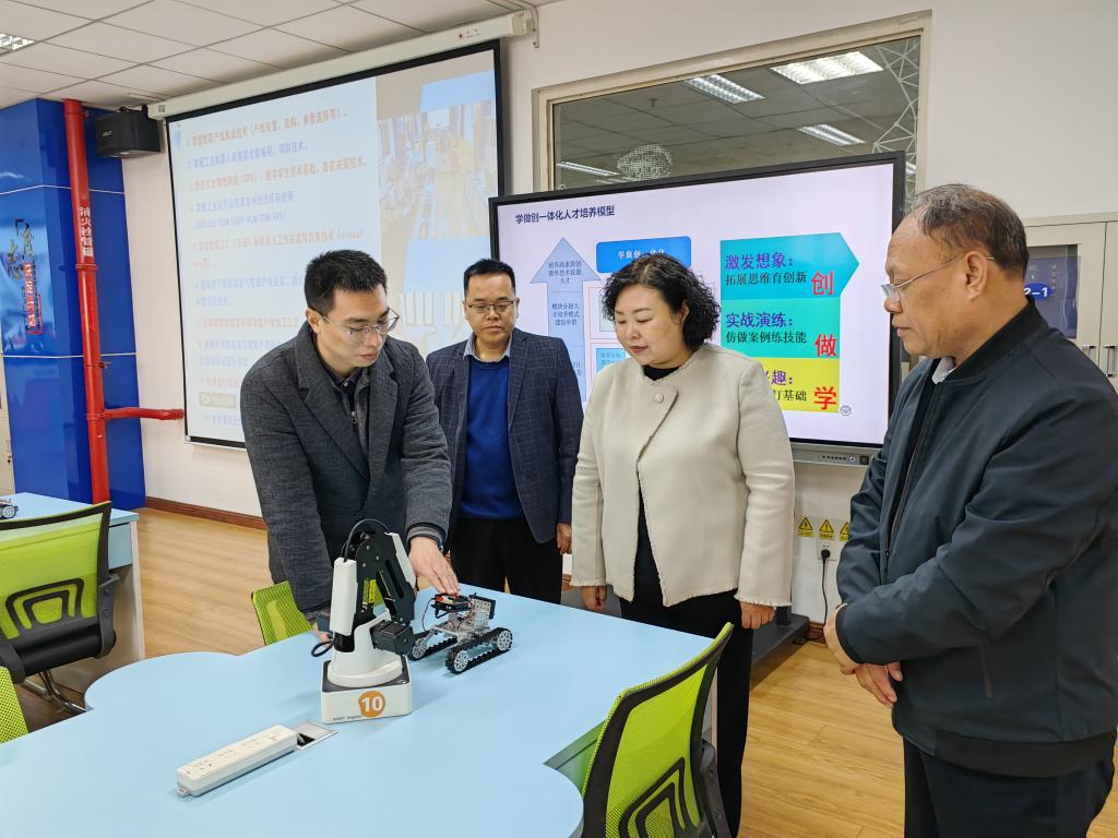 11月21日,咸阳市科学技术协会主席丁震霞、学会部部长武钢柱来校调研指导我校科技创新以及新能源及装备研发院士工作站相关工作。副校长刘清、科研处处长刘引涛陪同调研。丁震霞一行先后来到我校复合型移动机器人陕西省高校工程研究中心、陕西省智能微网与PEM制氢储能装备校企联合研究中心以及光伏组建实验室等科研场所调研了解科技创新工作推进情况。