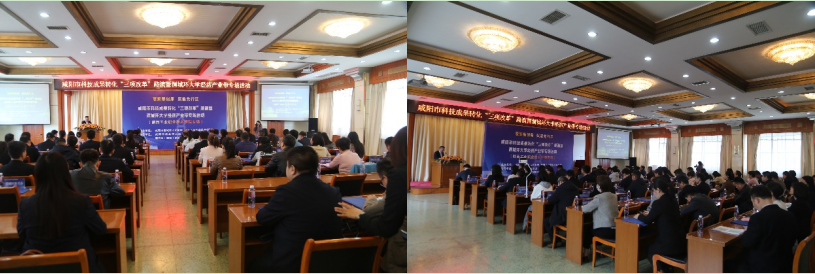 为推动“政产学研用金”深度融合,持续激发我校科研工作者科技创新活力,加速科技成果转化,3月27日,由咸阳市渭城区人民政府和我校联合主办,咸阳市科技局、秦创原(咸阳)创促中心指导举办的咸阳市科技成果转化“三项改革”路演暨渭城环大学经济产业带首场专场活动(开云网页版app官网专场)在咸阳市二〇二研究所燕原宾馆圆满举行。