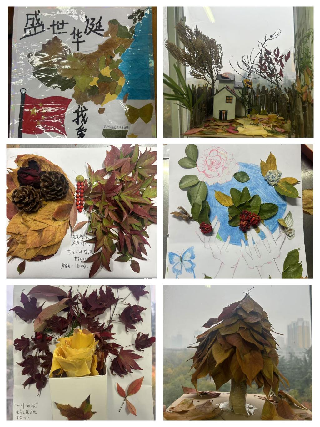 本次大赛由学院团总支学生会发起,要求利用树叶制作创意手工作品,突出“环保、节约、创新、美观、有内涵”的主题。同学们发散思维,展开丰富联想,融入绘画、书法等元素,将采集来的落叶、小草、落花等通过修剪、拼搭、粘贴,创作属于自己的作品,在享受自然中亲身体验,疏解心理压力,改善情绪,同时留住了专属秋天的美丽。活动共收到《记忆中的小院》、《破防的蒂》、《我爱我的祖国》、《一叶知秋》、《蝴蝶》等精美作品50余件,评选出一二三等奖若干。