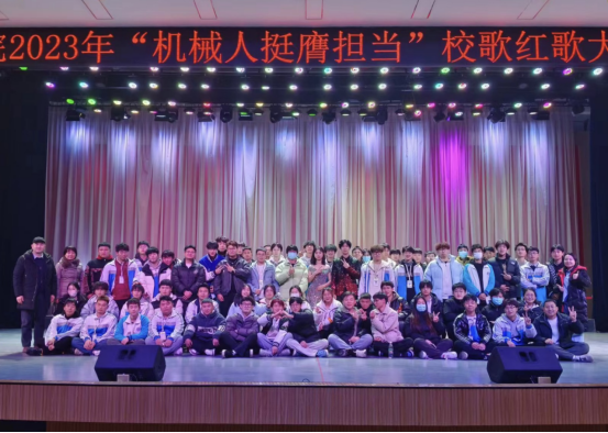 12月14日,陕西工院2023年“机械人挺膺担当”校歌红歌大家唱活动在渭城校区明德大礼堂举行,学生处副处长耿丽,团委书记薛媚,机械工程学院班子成员侯涛、郭旭华、王建军、何瑾,全体辅导员,班主任代表,2022级、2023级全体学生参加活动。