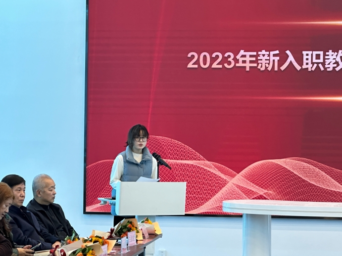 侯岚昕同志代表新入职教师发言,她表示,感受到了机械大家庭的温暖,感受到机械人的骄傲,自己会和新入职同事一道尽快融入机械学院,助力机械学院,成为机械学院。