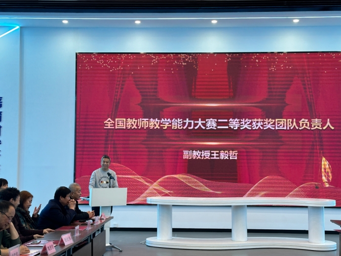 2023年全国职业院校教师教学能力大赛获奖团队(二等奖)负责人王毅哲副教授代表所有获奖师生发言,感谢了团队同事的共同努力与学校和学院为老师们搭建的平台及各类支持扶持,感谢所有师生以赛促学、以赛促练,通过技能大赛展示更好的自己和优秀的陕西工院。