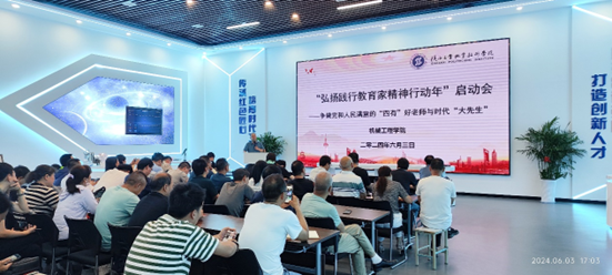 为学习贯彻习近平总书记关于大力弘扬教育家精神的重要指示要求,深刻领会并掌握教育家精神蕴含的丰富内涵和时代要求,6月3日下午,机械工程学院召开了“弘扬践行教育家精神行动年”启动会。学院全体教职工参会,会议由机械工程学院党总支书记侯涛主持。