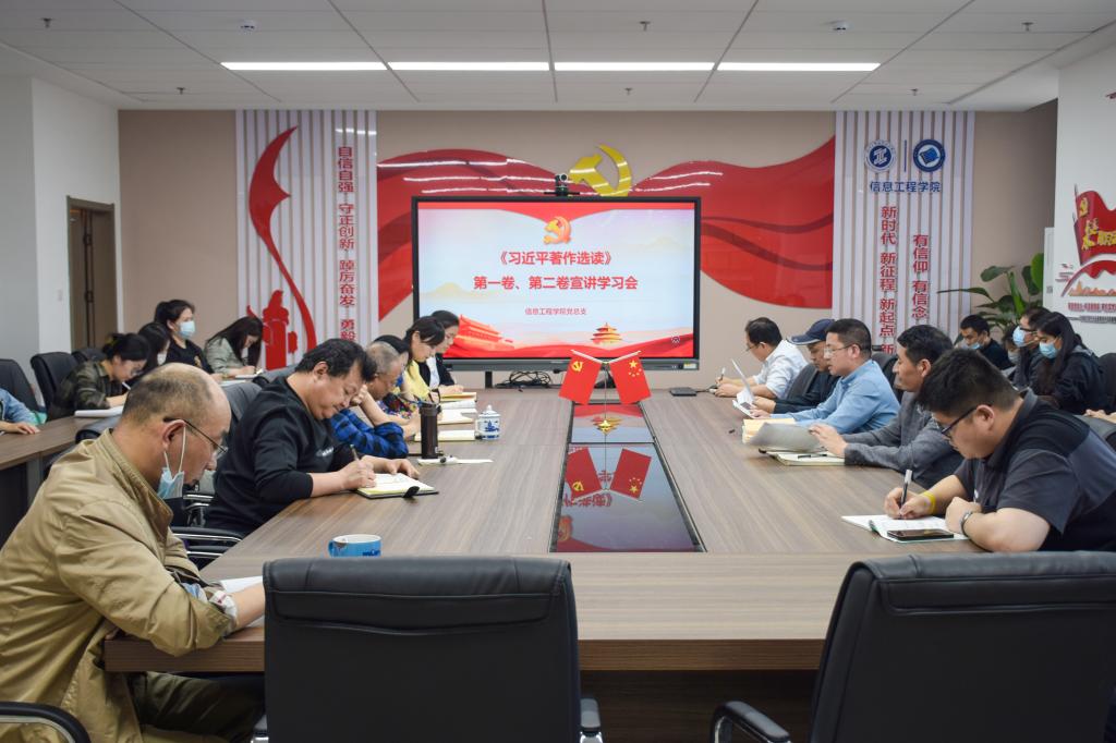 信息学院党总支全体班子充分发挥“头雁”作用,认真参加集体读书学习,发挥示范表率作用。以《习近平新时代中国特色社会主义思想专题摘编》《习近平著作选读》等资料为依托,通过“线上+线下”相结合的方式,拓展学习渠道、确保学习效果,做到以学铸魂、以学增智、以学正风、以学促干,确保理论武装不断线、不降温、不打折。