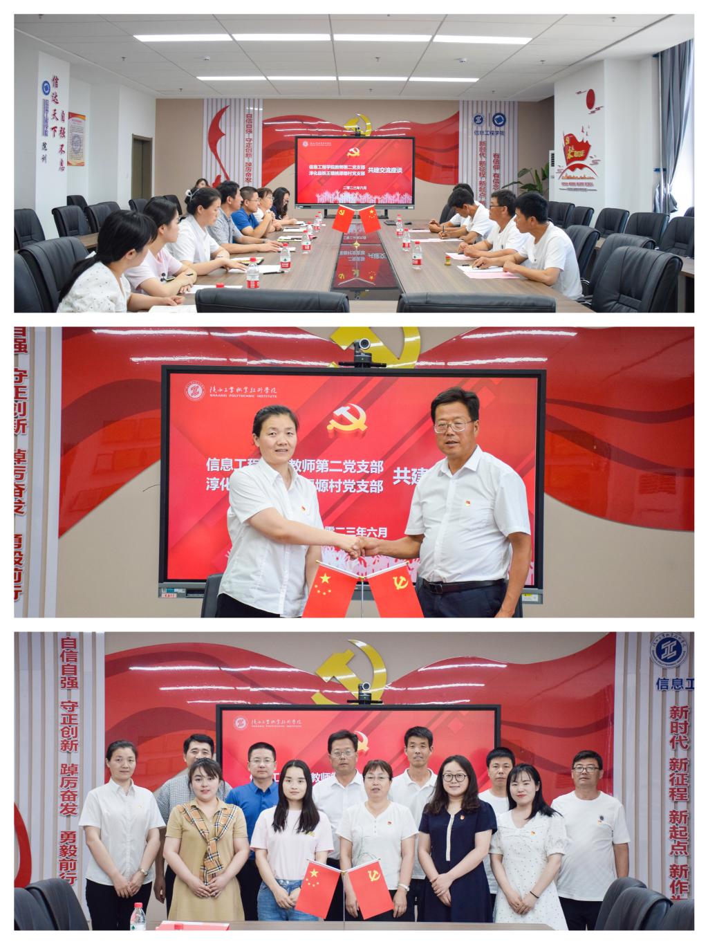 6月30日,信息工程学院党总支教师第二党支部与淳化县铁王镇桃渠塬村党支部在崇理楼C-801举行基层党支部联创共建活动签约仪式,旨在融合桃渠塬革命旧址红色基因和信息工程学院党总支教师第二党支部党建经验、数字媒体专业优势、人才支撑,共建“搭台”、党建“唱戏”,推动双方党建工作提档升级。信息工程学院党总支书记闫军、副院长白国政、副书记郭新玲、教师第二党支部书记李俊、支部委员及党员代表、桃渠塬村支部书记王联锋、副书记严传仁、支部委员罗朝阳、村委会副主任赵战宏等出席活动。