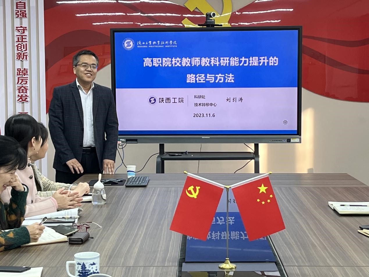会上,刘引涛处长作了题为《高职院校教师科研能力提升的路径与方法》的专题报告,解读了《开云网页版app官网横向科研项目及经费管理办法》《开云网页版app官网科技成果转化管理实施办法(修订)》《开云网页版app官网知识产权(专利)管理办法》等相关文件,重点对科研管理工作、课题申报注意事项、经费报销制度、科研平台搭建、考核及奖励等相关内容进行了深入解读,进一步加深了全体教职工对相关科研政策的了解。白国政院长随后进行了科研动员,鼓励学院教师,特别是博士、青年教师要积极树立科研意识、参与科研活动,不断提升个人水平与素质,以科研促进教学。
