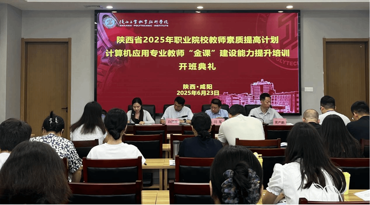 6月23日上午,陕西省2025年职业院校教师素质提高计划——计算机应用专业教师“金课”建设能力提升培训开班典礼在我校经开校区隆重举行。继续教育与培训学院院长闫军、信息工程学院院长白国政、继续教育与培训学院副院长贾严鹏以及培训管理人员、全体参训学员共40余人参加了开班仪式。仪式由继续教育与培训学院副院长贾严鹏主持。