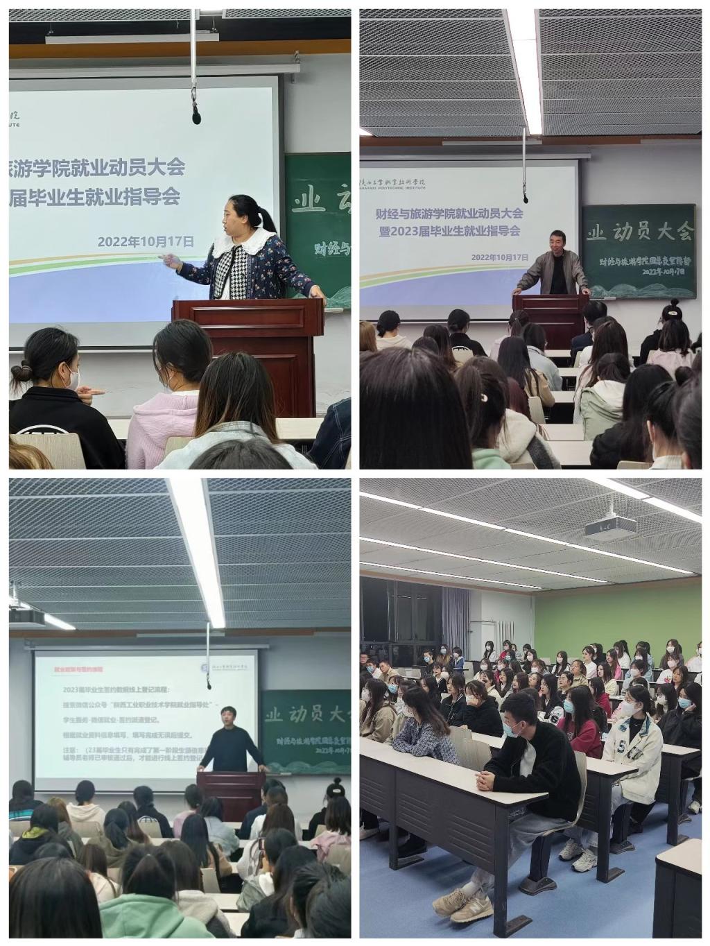 10月17日下午6时,财经与旅游学院2023届毕业生就业动员大会在新校区崇理楼E202、203举行。财经与旅游学院党总支副书记程建卫、学工办主任杜娟、就业辅导员陶若及250余名2023届毕业生代表参加了大会。大会由学工办主任杜娟主持。