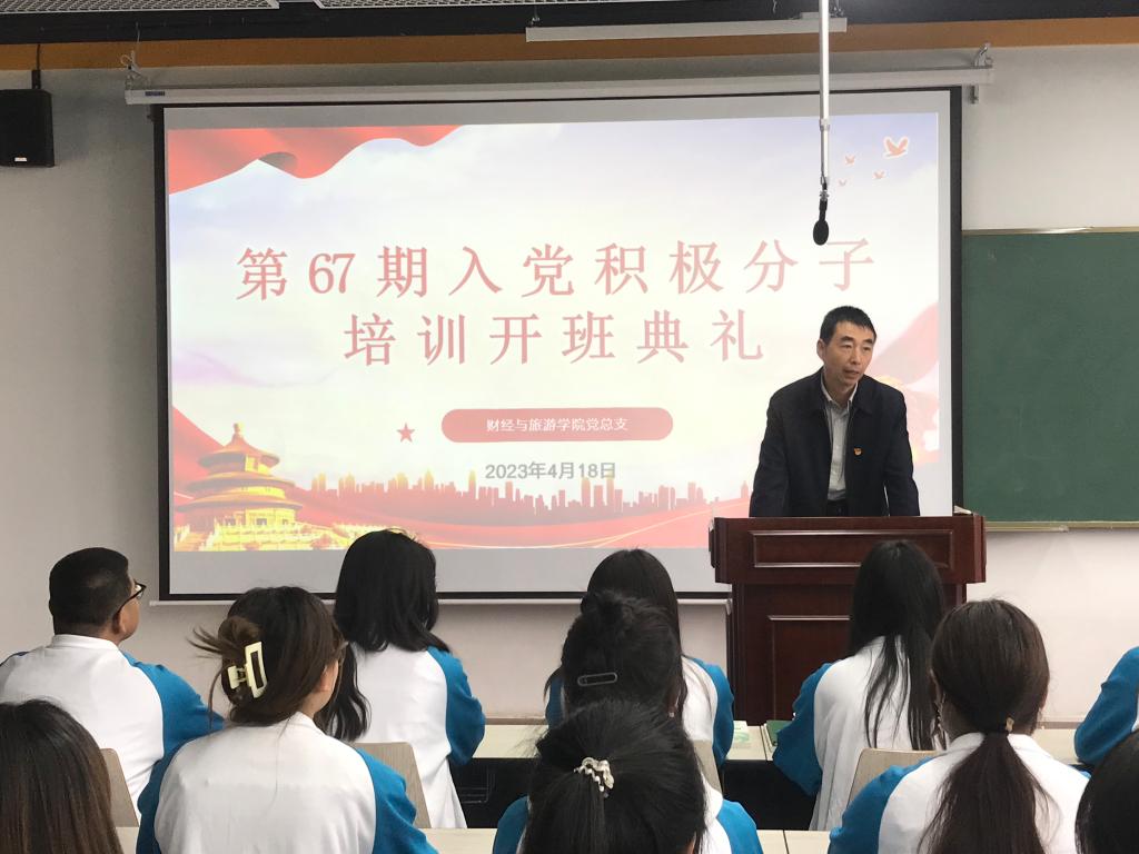 按照《关于举办2023年上半年入党积极分子培训班的通知》的文件精神,为学习贯彻习近平新时代中国特色社会主义思想和党的二十大精神,深入贯彻落实新时代党的建设总要求和新时代党的组织路线,进一步提高入党积极分子的教育培训质量。4月18日,财经与旅游学院党总支在经开校区崇理E202教室举行了第67期入党积极分子培训开班典礼。学院党总支副书记程建卫、学生第一党支部党员代表、第67期入党积极分子参加本次开班典礼。
