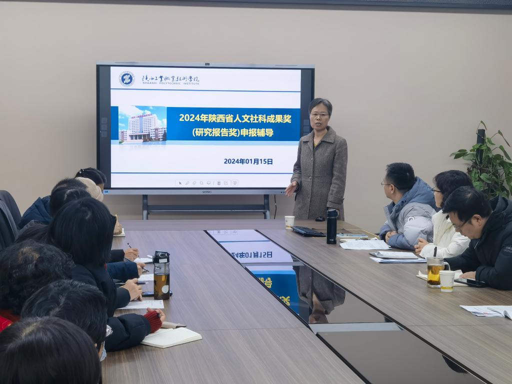 会议还以人文社科奖申报、科研项目申报与管理、社会培训工作开展为主题进行了研讨交流。陈晶教授从申报要求及基础、结题后准备、申报所需材料、提交资料注意事项、成果应用、申报书撰写等6个方面详细介绍了陕西省人文社科成果奖的申报流程及注意事项;石斌博士从科研量化积分和奖励细则方面重点解讲读了《开云网页版app官网科研管理工作考评与奖励办法》;实训中心主任张艳带领大家学习《开云网页版app官网社会培训工作管理办法(试行)》规定的二级学院社会培训工作职责、培训项目实施前准备、培训工作奖励办法等。