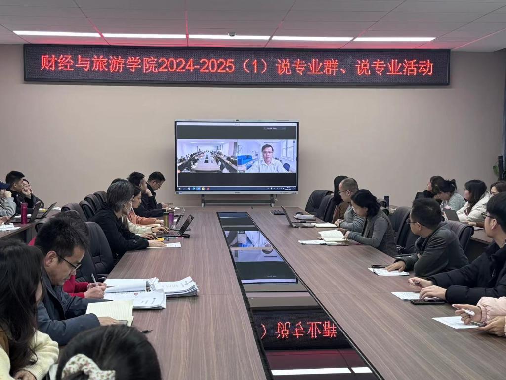 根据学校陕工院教字〔2024〕18 号《关于做好2024-2025学年第一学期期中教学检查工作的通知》,财经与旅游学院于12月2日、12月4日在崇理楼D504分两次开展了说专业群、说专业、说课程活动。财经与旅游学院全体教师参加,活动由财经与旅游学院教学办主任仝丹娜主持。