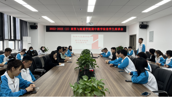 为了更好的了解学生的学习、生活和学校教学情况,听取学生意见,及时发现并解决问题。5月10日中午,商贸与流通学院在崇理楼B604会议室召开了2022-2023学年第二学期期中教学检查学生座谈会,来自各班共计60余名学生代表参加了座谈,会议由学工办主任成志平老师主持。