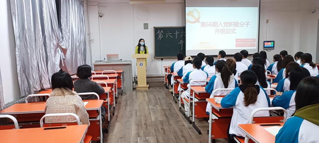 为持续做好入党积极分子的培养教育工作,切实把好党员队伍的“入口关”和“质量关”,11月7日晚,化纺服学院在崇文东楼504教室举行第66期入党积极分子培训班开班仪式。化纺服学院党总支书记贾格维、副院长刘迪、学生第一党支部书记闫琼及本期入党积极分子60余人参加了本次开班仪式。