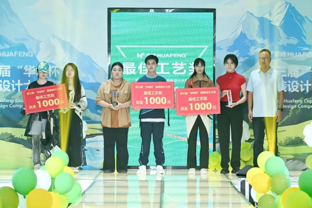 本次“华峰杯”服装设计大赛由福建华峰华锦有限公司主办,共收到104件来自全国各地的参赛作品,参赛选手包括来自北京服装学院、天津工业大学、武汉纺大等知名院校。我院学子的参赛作品“崇阿”色彩灵感来源于翡翠山水牌,造型上采用多功能的口袋造型,蜿蜒折转的衣片分割及双层门襟设计,表达了年轻人探索与成长的勇气和现代都市人对绿色,自然的户外探索的向往,贴合大赛“outdoor向山河出发”的主题。本系列作品由袁丰华、钟敏维老师指导,姚柳婷同学设计及制作,贠佳怡同学作为模特进行决赛现场展示。最终经过激烈的决赛,作品“崇阿”以创新的款式造型、完善的功能设置、精湛的工艺细节,最终获得了比赛的最佳工艺奖。