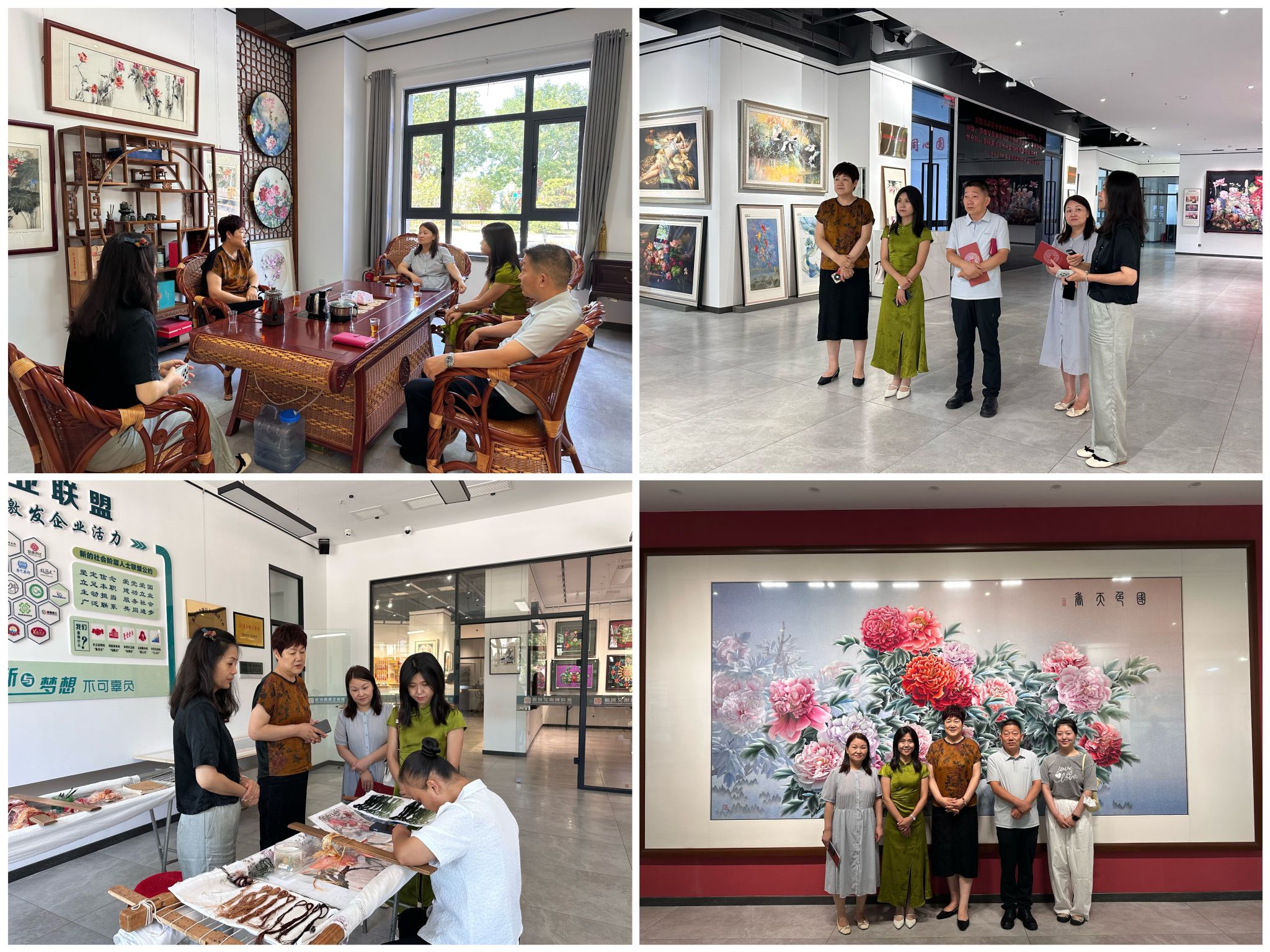 最后,在计清的带领下,一行人参观了馨绣展馆。展馆内精美的刺绣作品让大家近距离感受到了非遗文化的独特魅力和深厚底蕴,也为双方后续的合作提供了更多思路和灵感。