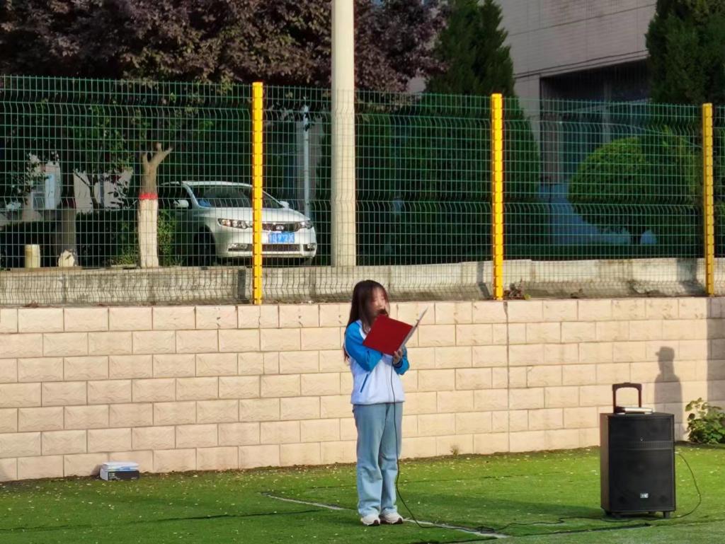 6点50分,国旗护卫队的队员们队列整齐,精神抖擞,迈着矫健的步伐,护卫国旗庄严出场。伴随着嘹亮的国歌,鲜艳的五星红旗冉冉升起。全体师生整装肃立,行注目礼。