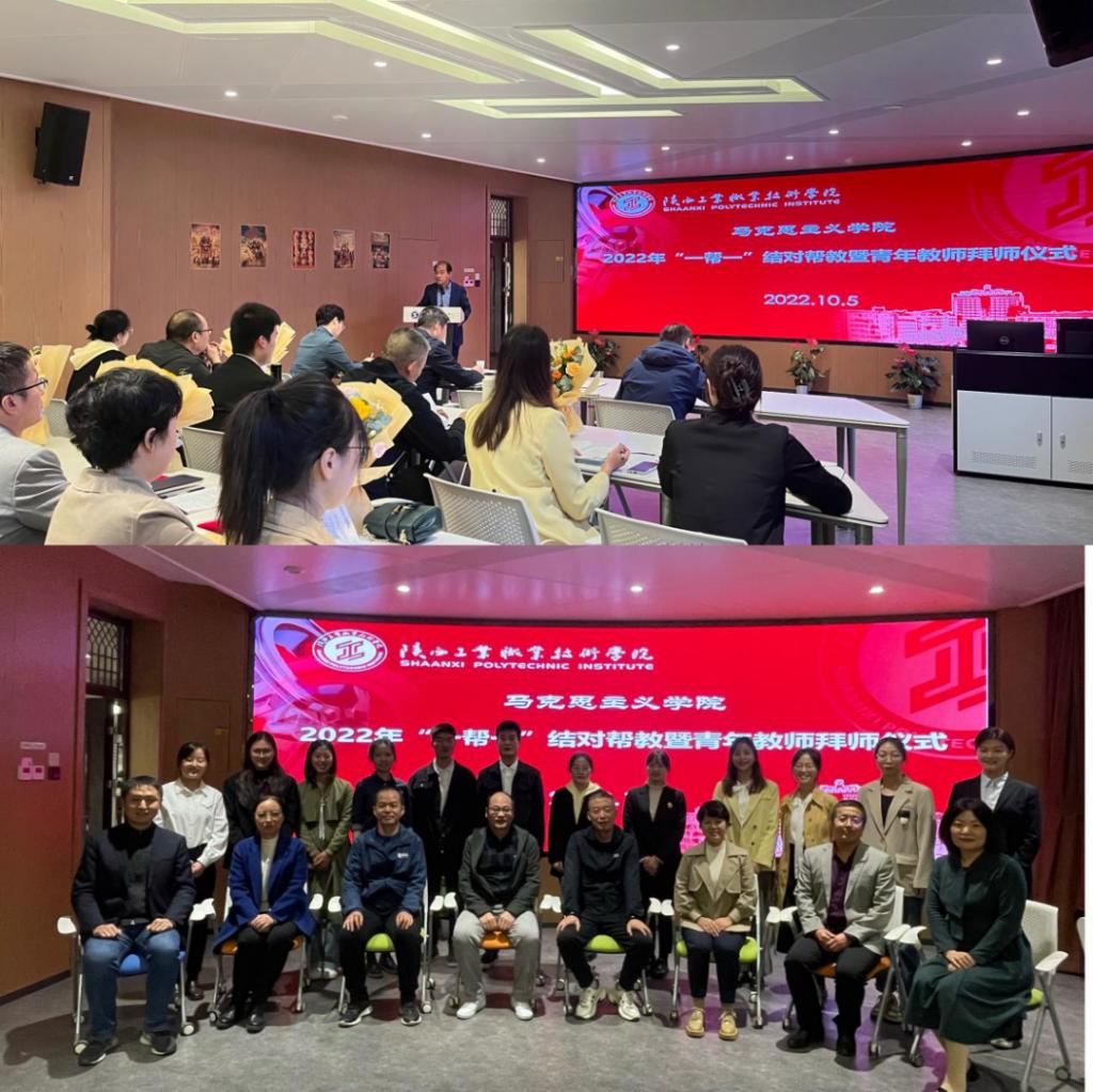 10月5日下午,马克思主义学院于VR智慧思政实训中心组织开展了2022年“一帮一”结对帮教活动暨青年教师拜师仪式。副校长梅创社,人事处处长、教师发展中心主任殷锋社及马院全体教师参加了本次活动,活动由马院副院长王艳主持。