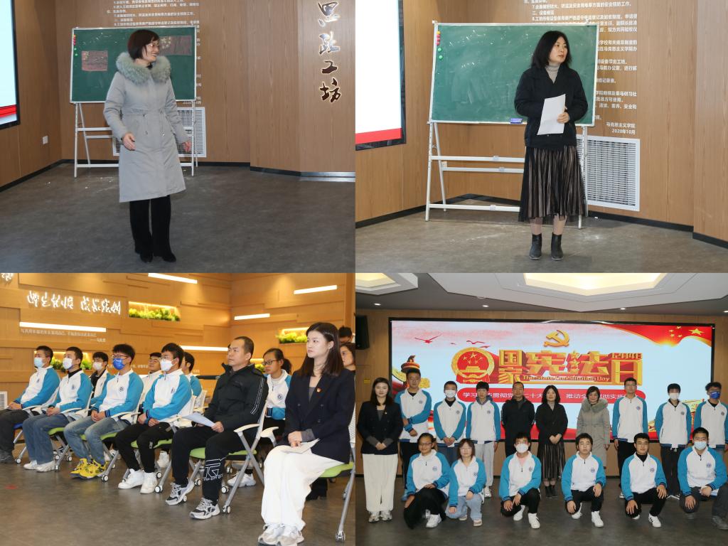 2022年12月4日是我国第九个国家宪法日。为切实推进中国特色社会主义法治理论进教材进课堂进头脑,有效落实立德树人根本任务,马克思主义学院围绕“学习宣传贯彻党的二十大精神,推动全面贯彻实施”主题,立足“大思政课”视角,通过讲好宪法学习宣传“三堂课”,让宪法精神“活起来”“落下去”。