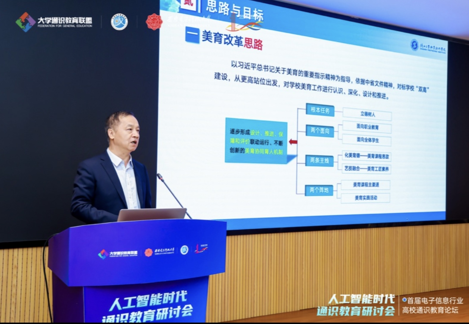 大会分为大会报告、分论坛报告两大部分,特设四邮四电通识教育与美育协作创新圆桌论坛。来自理、工、文、艺等不同学科的多名专家,围绕“人工智能时代的通识教育”“人工智能时代高校美育浸润行动创新”两大主题,阐发真知,共享灼见。