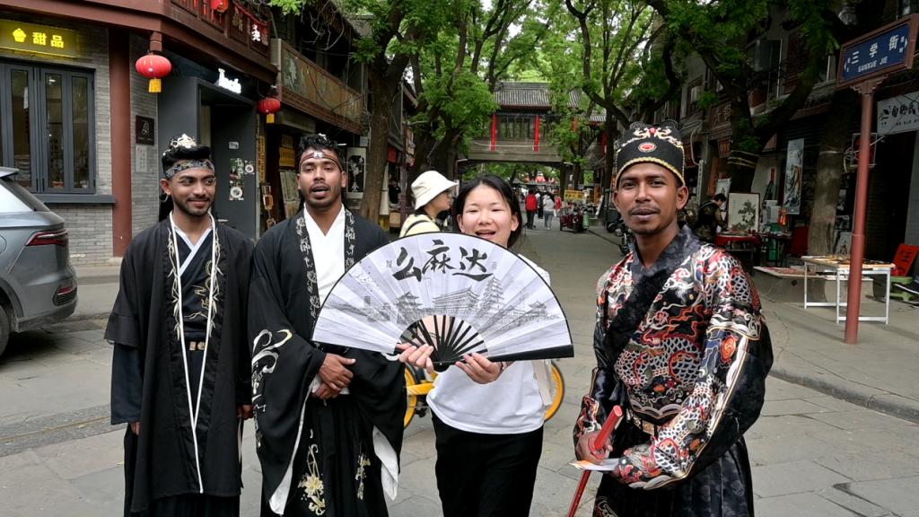 “越罗衫袂迎春风,玉刻麒麟腰带红。”这是唐代诗人李贺对汉服的描述,如今着汉服,持团扇,体验汉服文化的国人越来越多,这是对本土文化遗产的持续探索的持续"破圈",在新媒体媒介的帮助下,汉服火到海外。开云网页版app官网创新创业团队—长安三万里运营工作室的同学们,带领本校孟加拉国的留学生们,在西安的大街小巷体验穿汉服、写书法、打太极拳、促进文化交流和理解,为留学生们提供了一种更深刻的了解和欣赏中国优秀传统文化的方式。