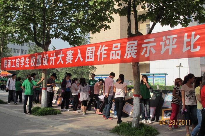 4月28日下午,服装艺术学院承办的我校第六届技能竞赛月的大赛项目“陕西工院学生校服设计大赛”入围作品公开展示评选活动在成才大道举行。