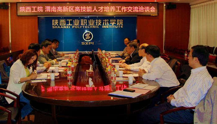 4月26日下午,渭南市高新区党工委委员、党群工作部部长谭文德一行六人来我院共商高技能人才培养工作,在崇文楼九楼会议室召开了座谈会。