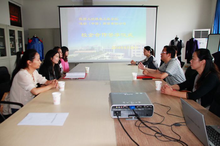 6月19日下午,热风投资有限公司招聘经理刘文辉、华东区招聘经理周义、西安莫顿贸易公司(热风分公司)人力资源部经理党红丽等一行来服装工程学院研讨校企合作。